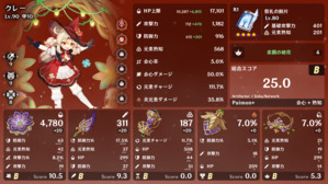 ヒルチャール相手に戦闘してみた。 うん、この程度ならこの聖遺物でも楽勝。 2万以上のダメージが出てる。 クレー熟知 568。