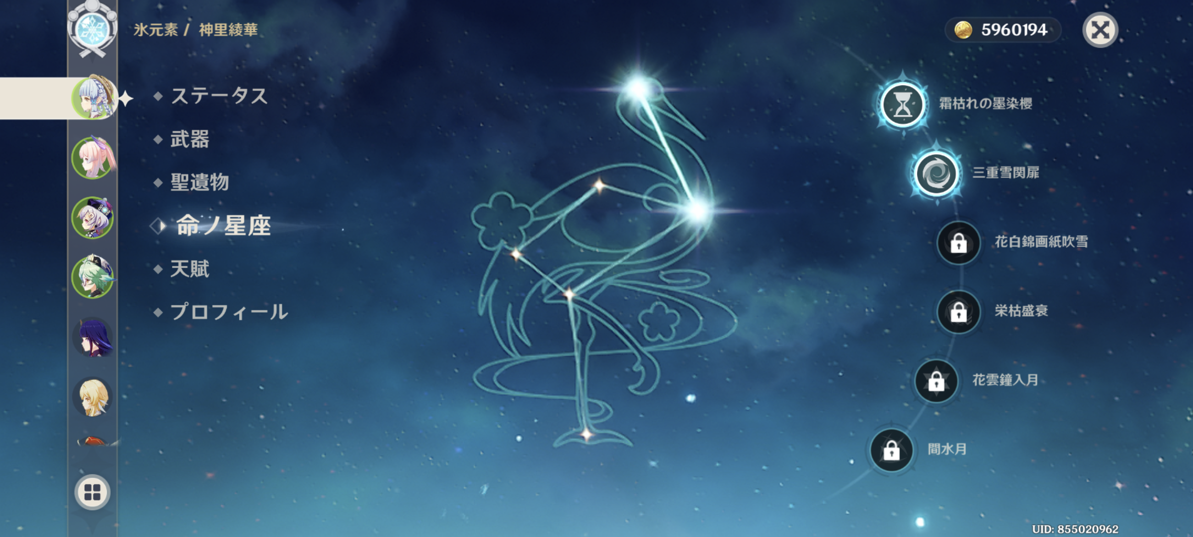稲妻探索頑張って、もう1回。ようやく★5綾華出た!!! 合計83回。